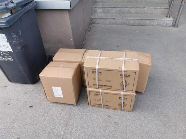 行政楼观光电梯外,几箱物资按约定时间运抵。这是外语学院20位老师筹资购买送给学校的100套二级防护服和2000双乳胶手套,希望通过学校,发放给战斗在抗疫前线的同事们。