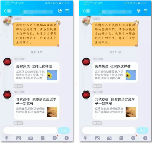 学工处党支部在此次的防疫过程中,除了下沉社区的任务,还承担着另外一个重要角色:心理咨询师!面对突如其来的疫情,心理健康中心迅速做出反应,开通《武汉城市职业学院防疫网络心理援助》通道,面向全校师生提供心理援助,帮助他们缓解紧张恐慌情绪,提供就医流程以及相关政策信息。同时,还通过《心约晓棠》微信平台,为学生转发心理疏导推文及疫情科普知识。5名心理咨询教师积极报名省教育厅高校心理志愿服务热线,为市民提供心理援助的服务。