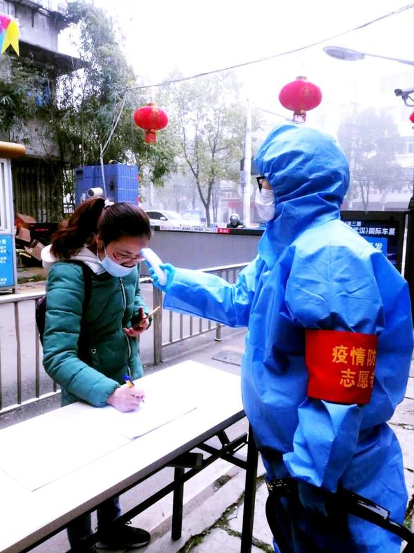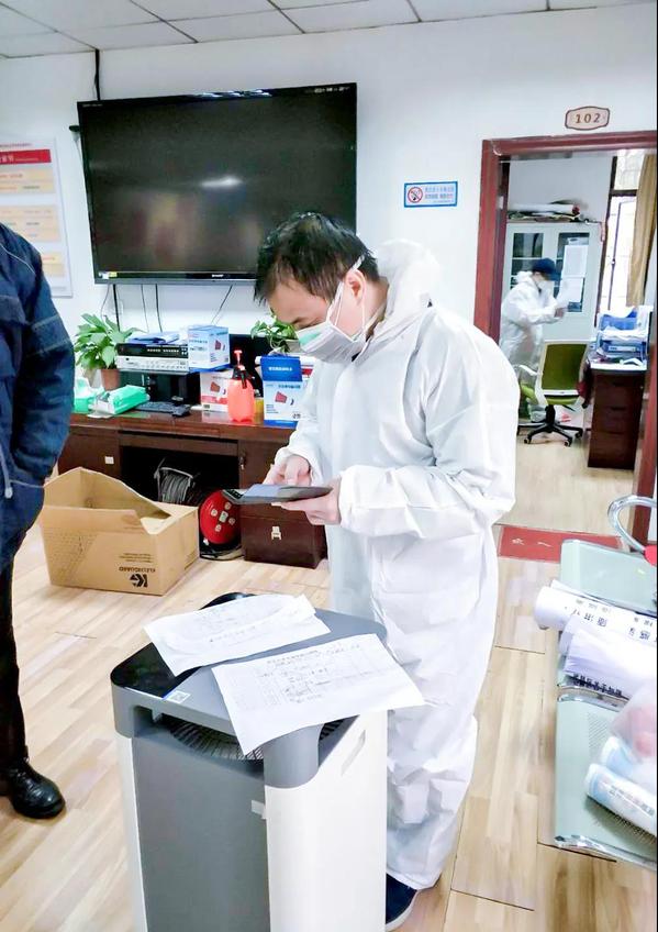 设备党支部的支部书记汪忠洋马上就要退休了,但他却是第一个到社区报到的,量体温、登记、消毒……完全顾不上头发已经花白,也顾不上自己的防护设备仅仅是一只普通的口罩。