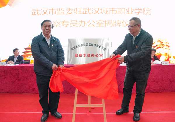 学校举行“武汉市监委驻武汉城市职业学院监察专员办公室”揭牌仪式
