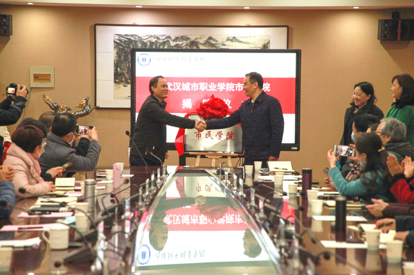 12月3日,“武汉城市职业学院市民学院”揭牌仪式在南校区举行,学校校长邓院方、洪山区委常委、区委办公室主任严湘桃、市民政局慈社处处长林勤、洪山区教育局局长赵群共同为市民学院揭牌,洪山区、武昌区相关街道、社区教育学院及社区党总支书记出席揭牌仪式。仪式由副校长叶学文主持。