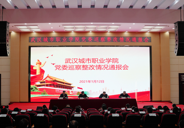 1月12日,学校在南区学术报告厅召开党委巡察整改情况通报会,市委第四巡察组组长黄长清同志,副组长杨守权同志,巡察组专员严立新同志、詹学军同志,谭健同志、王桂林同志、黄庭全同志;全体校领导、全体处级干部、校“两代表一委员”、离退休干部代表参加大会。