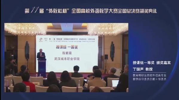 日前,第十一届“外教社杯”全国高校外语教学大赛(职业院校组)迎来全国总决赛。我校外语学院陈紫薇老师和董瑶老师团队分别获得综合课组一等奖和微课组三等奖,由武汉城市职业学院主办分赛区决赛的湖北赛区获得优秀组织奖。