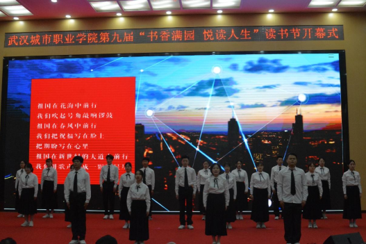 4月21日中午,武汉城市职业学院第九届读书节活动开幕式在南校区报告厅举行。开幕式以同学们精心准备的小提琴表演拉开帷幕,诗歌朗诵表演将现场的气氛推向高潮。