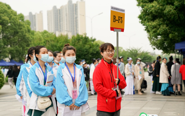 在现场,志愿者们分成引导组、内外场组、后勤保障组、服务组等若干小组,在考试中为考生提供了咨询、引导、协调等优质的考试服务工作,从而让来自全省的考生能够专注于考试。