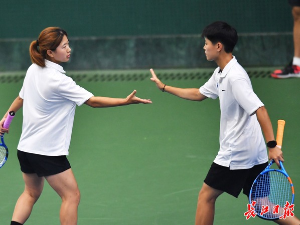 让黄明宝没想到的是,在大学一年级的时候,他就因为市运会首次设置青年组网球比赛,又一次登上了市运会赛场。他说,网球在该校是弱势项目,队伍在赛前一个月才临时组建,自己作为有网球基础的学生成为球队中的“幸运儿”。比赛中,黄明宝作为男单和混双主力先后上场。“好久没打比赛,对手很强,很开心还能参加市运会,真的太幸运了。”黄明宝说。