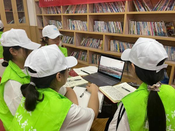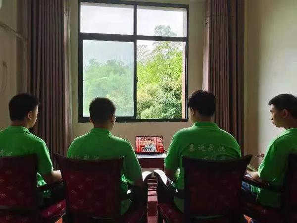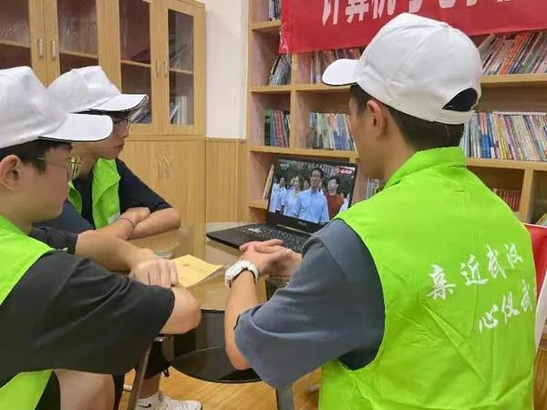 社会实践的学生观看直播