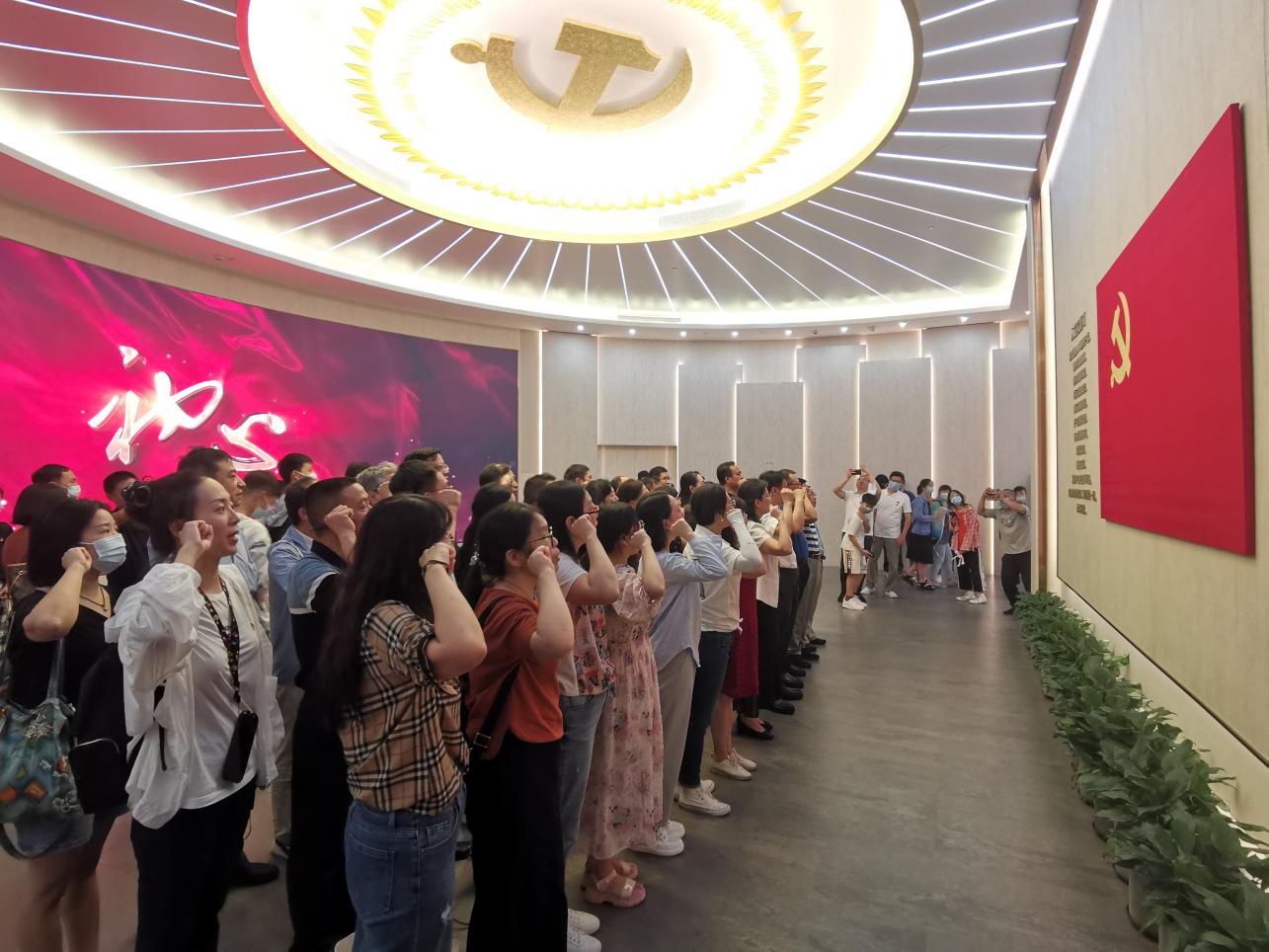 在宣誓大厅,由校党委书记邓院方领誓,全体党员重温入党誓词