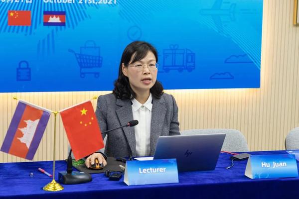 何怡昕老师用全英文主讲《中国跨境电商行业的发展情况概述》,围绕跨境电子商务的基本概念、跨境电子商务分类、中国跨境电子商务发展概况以及柬埔寨发展跨境电子商务的建议四个方面展开。