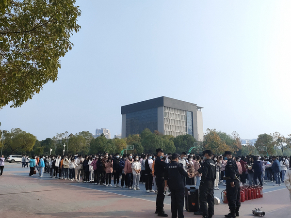 灾难无情,生命无价。消防安全是保障师生生命财产安全的重要环节,是确保学校健康稳定发展的关键,是促进社会和谐安定的重要基础。11月18日下午15时,保卫部(处)在校北区组织举办了“构建消防安全,共建平安校园”冬季消防演练。参与演练的有北区各学院书记、安全员、学生代表以及后勤部门从业人员等。洪山区消防救援大队和南湖消防救援中队出动消防救援车辆2辆配合演练,并安排专业警员对我校冬季消防演练给予指导。学校副校长杨爱民作了重要讲话。