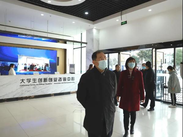 张幸平书记一行实地考察了我校文创学院、财经学院、机电学院和创业学院实训大楼,对我校产教融合、校企合作等方面所做的工作表示高度肯定。他说到,学校近几年的发展态势良好,校内设备设施不断完善,特别是在推进产教融合、校企合作方面成绩喜人。他指出,学校要深入学习贯彻党的十九届六中全会精神,坚持立德树人根本任务,强化责任担当;要精准对标新时代党和国家对教育的新要求, 切实提高政治站位,始终保持战略定力,在自我革新中,不断巩固学校办学优势,开创立德树人新局面;要毫不松懈抓好疫情防控工作, 统筹做好学校疫情防控和教育教学工作,确保校园平安。