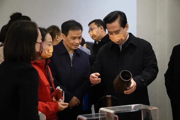 湖北省政协主席黄楚平一行来到武城楼,在校党委书记邓院方的陪同下参观了基地的作品,他对学校在服务地方经济发展上做出的努力和成果表示赞赏。