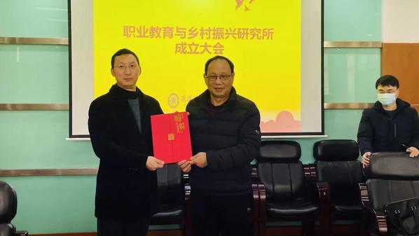 1月11日,学校职业教育与乡村振兴研究所成立仪式在行政楼827会议室举行。