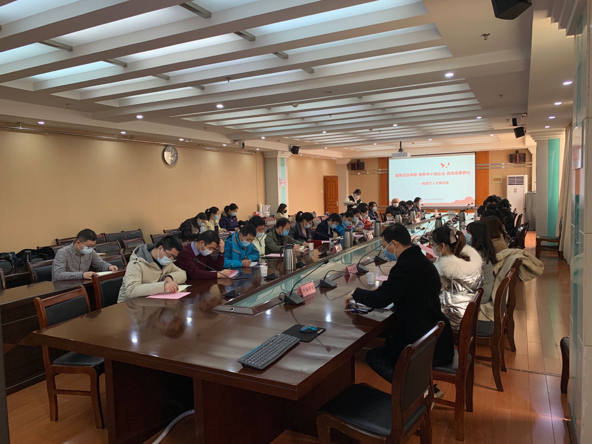 224日下午,在南校区行政楼822会议室,举行了全校高层次人才专题座谈会。座谈会由科研处举办主题为《聚焦项目申报 服务中小微企业 促进成果转化》,科研处处长熊娟梅主持会议,人事处副处长王秀丽、我校全体博士教师、科研处全体工作人员参加
