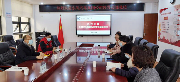 2月22日上午,东风汽车集团公司人事共享服务中心高级专家王彤、技能专家洪传龙一行到访我校,洽谈新一年的校企合作培训相关事宜。学校副校长杭勇敏出席洽谈会,继续教育学院院长曾菁、副院长胡建,机电工程学院党总支书记陈淑花、副院长何锡武参加会谈。