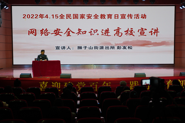 为深入学习贯彻习近平总书记关于网络强国的重要思想和关于网络安全的“四个坚持”重要指示精神,切实提高学校师生的网络安全意识、网络安全技能,积极营造安全、健康、文明的网络环境,学校在“4.15全民国家安全教育日”到来之际,邀请狮子山街派出所副所长彭友松同志来校开展网络安全知识进高校宣讲。