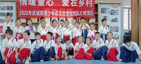 诵唱《明日歌》、武术《少年中国说》、国风舞蹈《小城谣》,还有那一把把美丽的团扇,让观看演出的村民们纷纷叫好。实践队队员张颖珍说:“我们希望村里的孩子们都能感受到传统文化的美好,这样他们会更加热爱我们的国家,从小就树立起文化自信。”