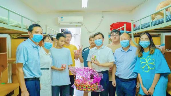 9月10日上午,党委书记邓院方、校长张英、副校长杨爱民和相关职能部门负责人分别前往南北校区,走进宿舍看望学生,与学生亲切交谈,鼓励他们珍惜韶华,在学校努力学习、练就本领,勇担时代大任。校领导还慰问了节日期间坚守岗位的辅导员老师,向他们表达了节日的问候。
