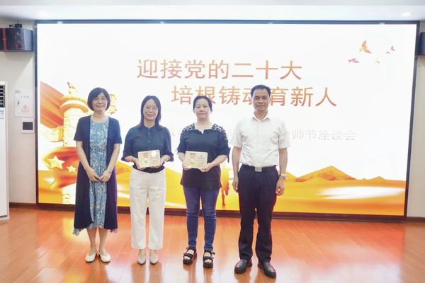 9月8日,学校召开以“迎接党的二十大,培根铸魂育新人”为主题的2022年教师节座谈会。校领导、相关职能部门负责人、教师代表等参加会议,并为从教30年的教师代表张智、吴瑛颁发纪念章。