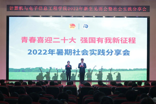 计算机与电子信息工程学院学子用脚步丈量大土地,引导和帮助广大青年学生上好与现实相结合的“大思政课”,在社会课堂中受教育、长才干、作贡献,在观察实践中学党史、强信念、跟党走。近日学院召开了2022年暑期社会实践分享会,从“青春献礼二十大,七彩假期暖童心”的情景剧表演,到“童心向党续星火,赋能乡村新振兴”的汇报,计信学子们在躬身实践中坚定理想信念、在广阔天地间夯实专业技能、在青春奉献中践行“请党放心,强国有我”青春誓言的形象尽情展现。