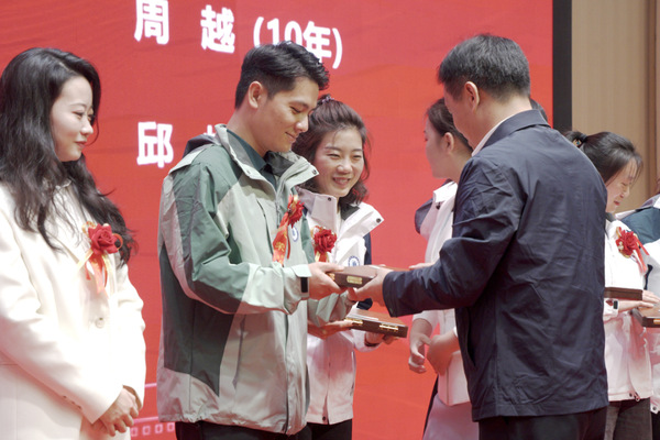 党委书记邓院方为工作十年以上的辅导员颁发纪念章
