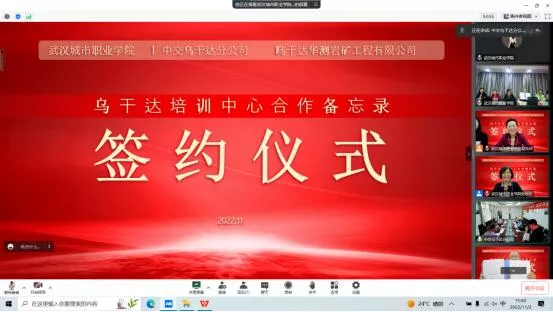 11月2日下午,学校与中交乌干达分公司、乌干达华测岩矿工程有限公司“合作备忘录”网络签约仪式顺利举行。校长张英、副校长段永发,中交一公局集团总经理助理兼海外事业部党委书记赵伟、中国交通建设股份有限公司乌干达分公司党支部书记鞠文杰、乌干达华测岩矿工程有限公司经理付海明出席本次仪式,学校相关部门负责人参加本次活动。
