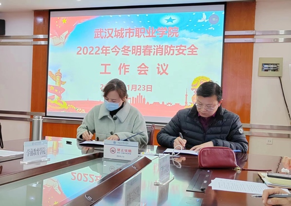 副校长杨爱民代表学校与建筑工程学院签订《武汉城市职业学院今冬明春消防安全责任书》