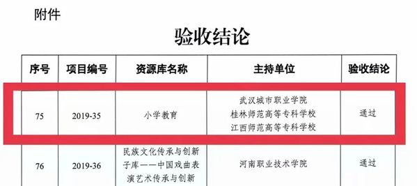 近日,教育部职业教育与成人教育司发布《关于公布职业教育专业教学资源库2022年验收结果的通知》,学校与桂林师范高等专科学校、江西师范高等专科学校三校共同主持的小学教育专业教学资源库顺利通过验收。