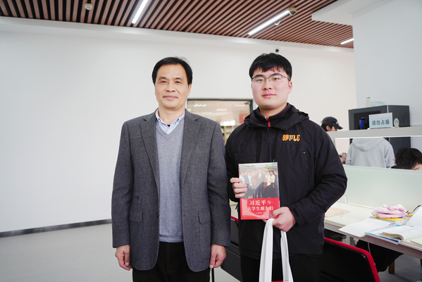 3月2日下午,学校党委书记邓院方专程来到图书馆,亲切慰问正在备考“专升本”的胡科同学,并代表学校赠送了慰问品。