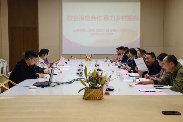 会上张英校长对赤壁市领导一行来访表示热烈的欢迎,肯定了学校与赤壁市两山投资公司多年的合作成果。张英校长指出,学校高度重视人才培养和校企合作,双方的交流合作可以不断深入,拓展到我校各学院,多领域,多专业,践行职业教育服务地方经济的理念,扩大合作领域,更好助力乡村振兴。