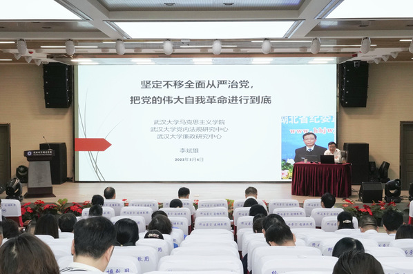 会上,武汉大学马克思主义学院李斌雄教授围绕“坚定不移全面从严治党,把党的伟大自我革命进行到底”这一主题,作了专题辅导报告。从“什么是党的自我革命”“为什么要坚持党的自我革命”及“如何把党的伟大自我革命进行到底”三个方面,对习近平总书记关于党的自我革命、推进全面从严治党重要论述进行了全面梳理、深入讲解和学习导读,对我们深入学习、把握、贯彻习近平新时代中国特色社会主义思想,具有十分重要的意义和积极的帮助。