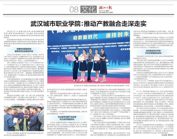 5月18日,湖北日报以“武汉城市职业学院:推动产教融合走深走实”为题,深入报道了学校在产教融合方面取得的成就。