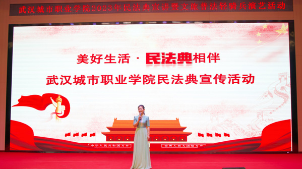 活动第二部分,武汉说唱团艺术家们登台,围绕《民法典》、国家安全、防范电信诈骗、反邪教等主题,通过快板、相声、湖北小曲、湖北大鼓和小品等文艺形式,表演了《说说我们的民法典》《电诈无间道》《总体国家安全赞》《我要发财》《无孔不入》等文艺节目,将法律知识融入传统曲艺表演,赢得师生阵阵掌声。