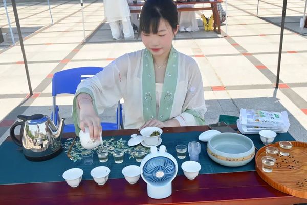 现场,酒店学院的同学们展示了点茶、茶艺、创新茶饮、特色花茶等技艺,展现了茶文化在中国源远流长的发展历程,表现了茶文化在中国人日常生活中的重要地位,生动阐释了茶文化历久弥新、绵延不绝的生命力和活力。