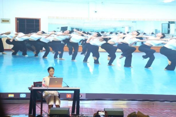 “啪,啪啪,啪!”节奏感十足的拍击声已响彻了整个艺术楼,这是国家级非遗项目利川肉连响传承人刘守红老师为学院师生带来的“以舞育人,以舞传承”课程思政专业实践教学大师课。