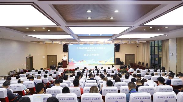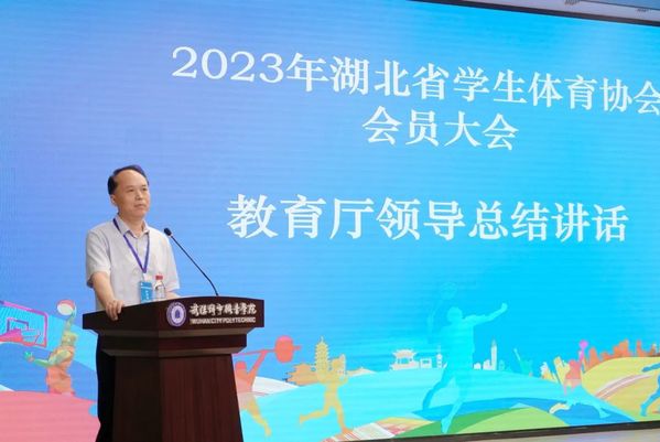 6月17日,2023年湖北省大学生体育协会会员大会在我校召开。省教育厅副厅长张金元,省教育厅体卫艺处处长丁雪峰,副处长缪胜杰,协会理事长、武汉理工大学党委副书记赵经,协会副理事长、武汉工程大学党委副书记李志旭,协会副理事长、武汉体育学院副校长王志强和我校党委书记邓院方、校长张英等领导嘉宾出席大会,全省125所高校的会员代表和各地市州教育局有关负责同志参加本次活动。大会由省教育厅体卫艺处处长丁雪峰主持。