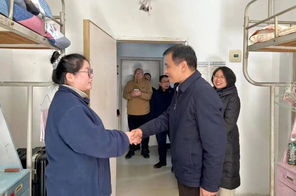 1月25日,学校党委书记邓院方带队前往学生宿舍看望慰问寒假期间留校备赛的学生代表。邓书记详细了解了同学们备赛训练以及生活保障情况,勉励大家勤学苦练争取取得优异成绩,也提醒同学们注意消防安全,要求相关部门和学院做好后勤保障和安全教育工作,确保学生在校期间生活无忧,保障到位,邓院方书记还检查了学生宿舍消防安全设施设备情况。