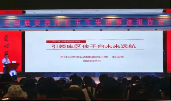 国将兴,必贵师而重傅。9月21日,全国最美教师、全国模范教师、湖北省丹江口市龙山镇彭家沟小学教学点校长彭玉生老师来到学校,围绕“传承教育家精神 绽放最美教育之光”作了一场生动的主题报告,激励更多教育工作者投身乡村教育事业,传递教育正能量。学校初等教育学院、学前教育学院的师生们聆听了报告。