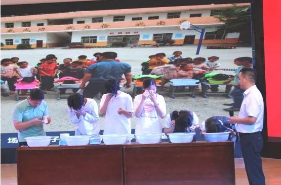 安全教育是学校工作的重中之重。因此在报告会上,彭玉生结合近年来频发的溺水事故,创新性地开展了一次别开生面的防溺水教育活动。他特地将几个脸盆放在舞台上,装满清水,邀请同学们轮流上前,体验短暂的“溺水”感受。彭校长的这一新颖而有效的教育方式,不仅让同学们对溺水有了更直观的认识,也有效提升了学生们的安全意识和自救能力。生动的教学体验,让同学们对安全有了更深刻的体会,大家纷纷表示,那种窒息感让他们深刻体会到了溺水的可怕,也更加珍惜生命。