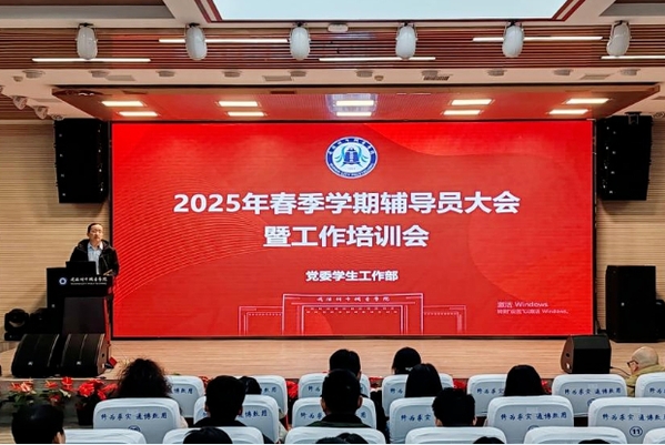 为系统谋划新学期学生工作,凝聚学工队伍力量,提升学生工作质量与成效,2月20日下午,学校2025年春季学期辅导员大会暨工作培训会在财经学院报告厅召开。党委学工部、校团委全体成员、各学院学办主任、团委书记、副书记、全体辅导员参会。各学院辅导员代表学习分享了《教育强国建设规划纲要(2024-2035年)》、《DeepSeek赋能高校辅导员学生工作实践与探索》等内容,会上还对全年学生工作安排进行了部署。