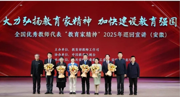 近日,教育部在京举行全国优秀教师“教育家精神”2025年巡回宣讲活动首场报告会。教育部党组书记、部长怀进鹏表示,举办教育家精神2025年巡回宣讲活动,拉开了教育家精神铸魂强师行动的序幕,是深入贯彻落实全国教育大会精神和教育强国建设规划纲要的重要举措。