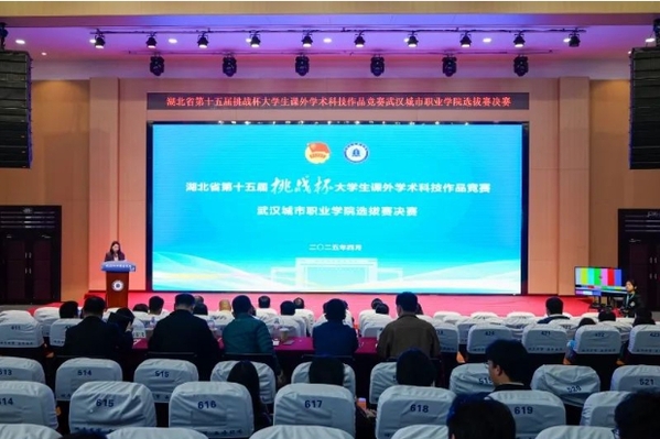 4月2日,湖北省第十五届“挑战杯”大学生课外学术科技作品竞赛武汉城市职业学院选拔赛决赛在南校区报告厅举行。学校副校长叶学文,学校党委委员、副校长杨春松莅临比赛现场,各职能部门负责人、各学院党总支书记、团委书记、副书记出席了本次大赛。叶学文希望能以本次大赛为契机,不断推动学校创新创业工作走深走实,持续提高人才培养质量,为学校高质量发展和服务地方区域经济发展做出新的贡献。杨春松为第十四届“挑战杯”中国大学生创业计划竞赛获奖项目颁奖。现场邀请了来自高校、行业、企业的专家导师对本次比赛进行评审指导。22支参赛团队按赛道类别和顺序依次上台路演,展示完毕后,评委根据项目申报表、路演展示及现场答辩进行打分,并针对展示中出现的问题进行提问、沟通和指导。