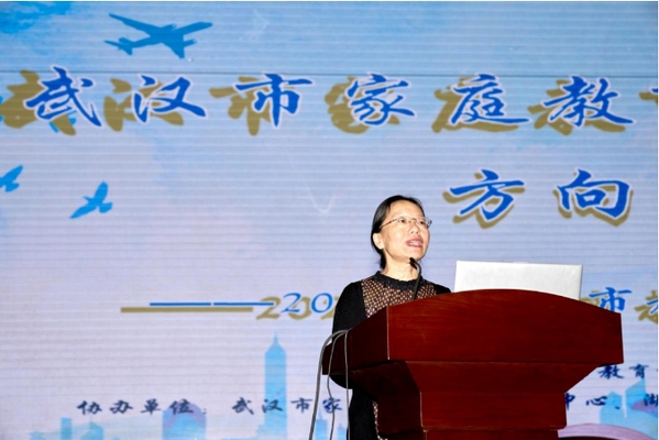 武汉市教育科学研究院基础教育研究所家庭与社区教育研究室主任陈红梅分享《基于问题导向创新家庭教育指导服务体系——武汉市教育系统家庭教育指导服务现状调研总报告》