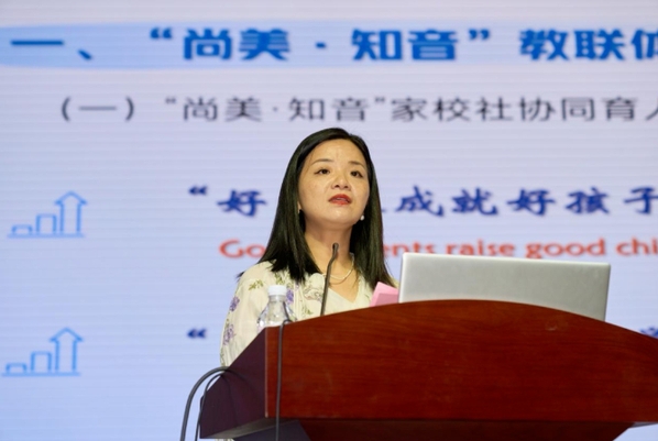 武汉市七里中学政教主任高力分享《“尚美·之音”家校社协同构建育人新图景》