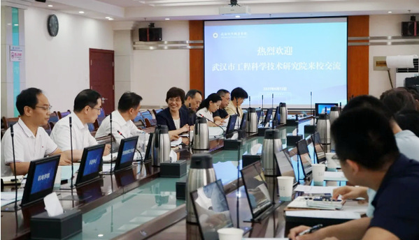 6月12日,武汉市工程科学研究院党委书记、院长陈铭恩带队来校交流。学校党委书记邓院方,党委副书记、校长张英,副校长王谦出席,相关职能部门、学院负责人参加。陈铭恩介绍研究院基本情况,在听取学校“武汉市物联网设备源代码安全分析中试平台”建设情况介绍后,就建设情况与学校进行交流讨论。