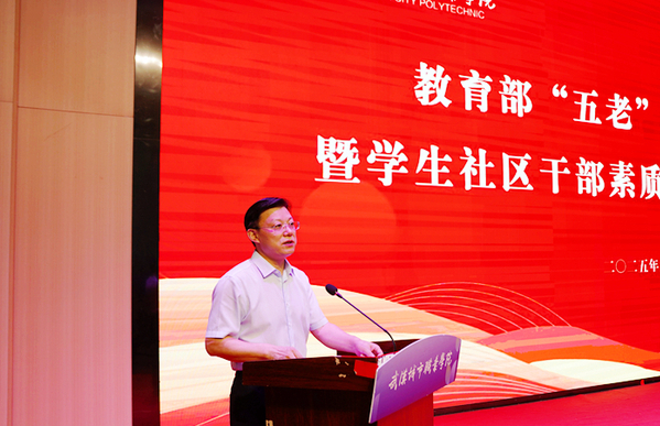 6月13日,教育部“五老”报告团宣讲暨学生社区干部素质提升训练营在我校南校区学术报告厅举行。全国劳模、上海市教育系统关工委副主任王连云作专题报告,校党委委员、副校长杨爱民主持会议,400余名师生代表现场聆听。