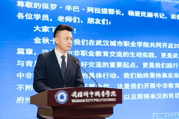 肯尼亚基西郡郡长保罗·辛巴·阿拉提通过线上讲话时表示,基西郡与武汉市在教育交流、经济协作、友城共建等领域都取得了丰硕成果。他特别感谢学校聚焦职业教育与培训,为当地青年提供实用技能,提升了当地青年的就业与创业能力。