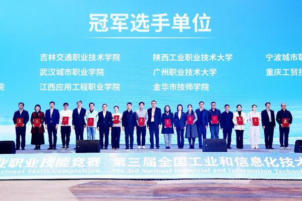 第三届全国工业和信息化技术技能大赛由工业和信息化部、人力资源社会保障部、教育部、中华全国总工会和共青团中央共同主办。本次大赛聚焦智能网联新能源汽车、智能工业机器人、RISC-V等架构芯片开发与系统应用等6个领域设置赛项。来自全国30个省(区、市)、新疆生产建设兵团及26家中央企业,共408支队伍、834名选手参加决赛,最终决出一等奖24个、二等奖96个、三等奖106个。